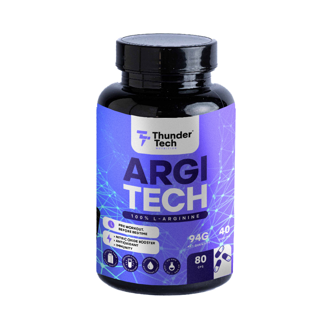 ARGITECH 80CPS di THUNDERTECH NUTRITION è un integratore di 100% Arginina, un aminoacido condizionatamente essenziale le cui funzioni lo rendono indispensabile per la tua performance sportiva e per la tua salute.