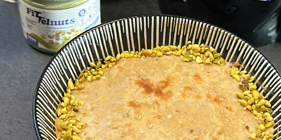 Gusta la tua mega Baked Oats bowl al pistacchio calda!