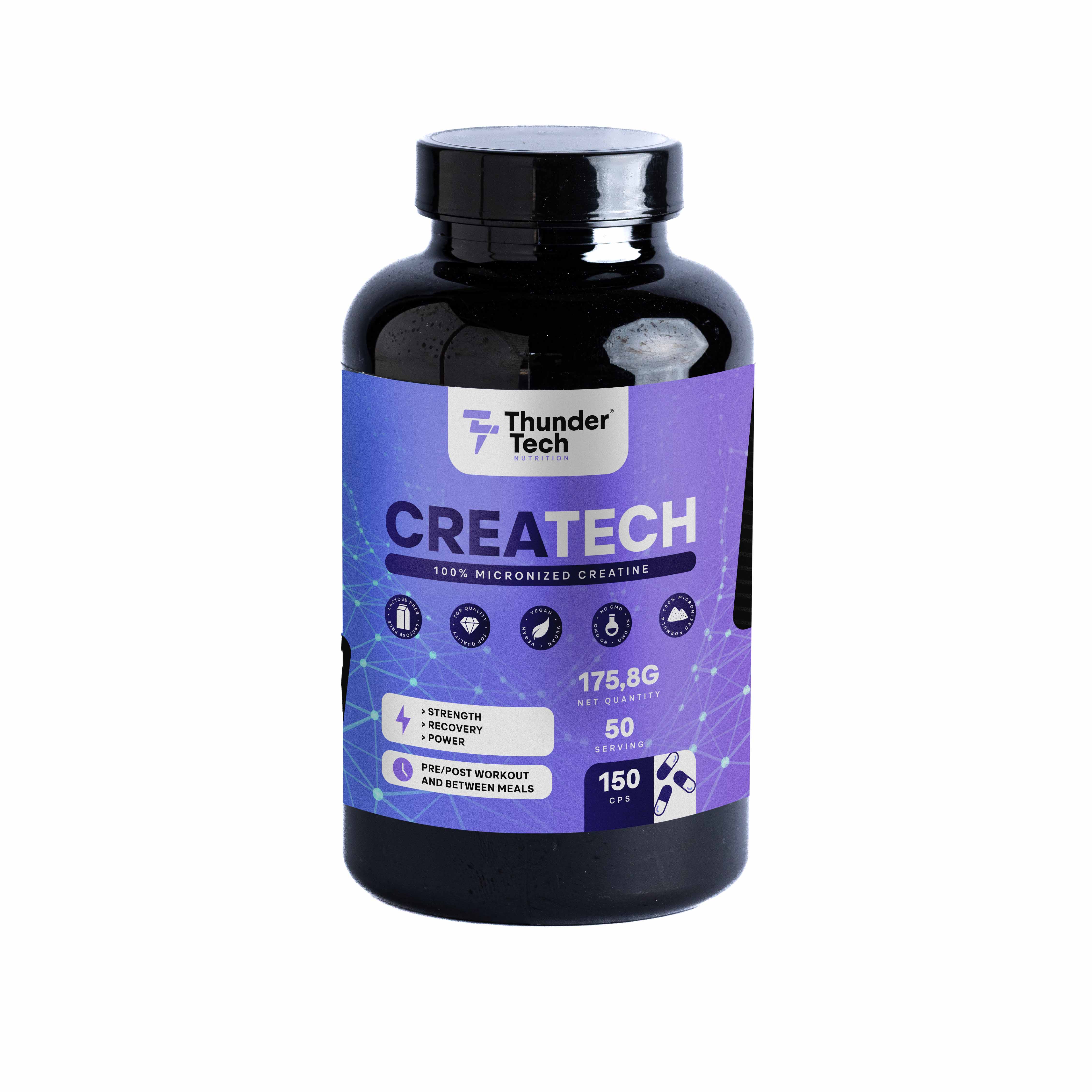 CreaTech 150cps di ThunderTech Nutrition è un integratore di creatina monoidrata micronizzata 200mesh in capsule: la miglior forma di creatina micronizzata presente sul mercato.