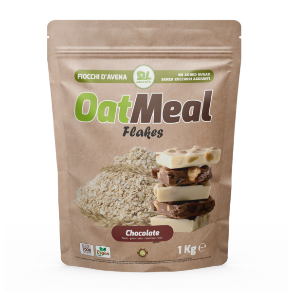 Fiocchi D'avena 1kg Cioccolato di DAILYLIFE sono fiocchi di avena naturali aromatizzati al gusto di cioccolato.