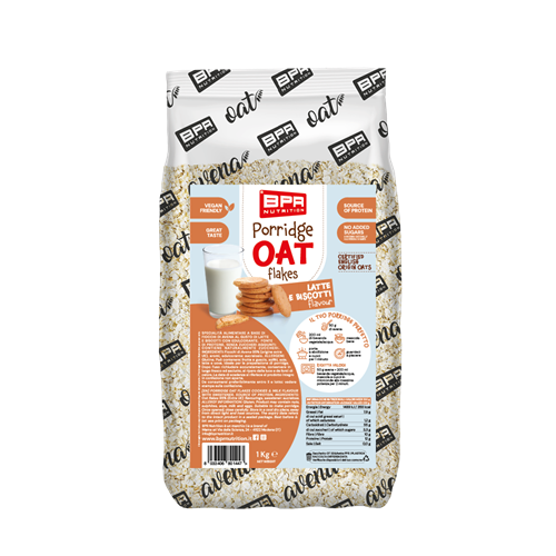 FIOCCHI D'AVENA BABY 1 KG AROMATIZZATI  di BPR NUTRITION sono dei fiocchi d'avena in farmato Baby, questo formato difiocchi più piccolo rende il prodotto molto più morbido e tenero, ideali per preparare dolci fit ed il fantastico porridge inglese.