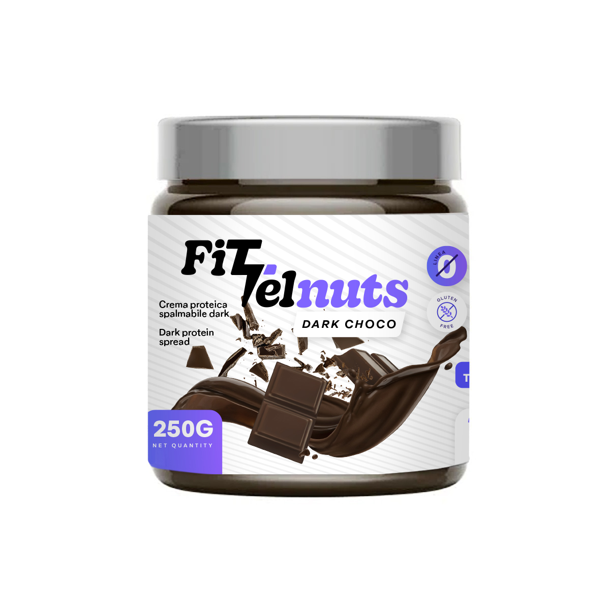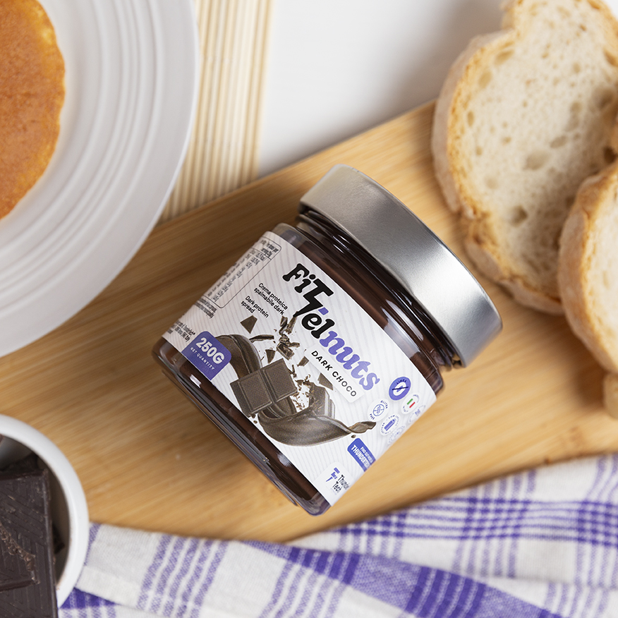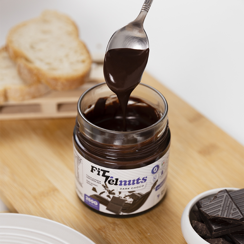 FITTELNUTS DARK CHOCO 250G è l'incredibile crema spalmabile targata Thunder Tech Nutrition con il 25% di proteine del siero del latte, senza glutine e low lactose che ti farà tornare bambino!