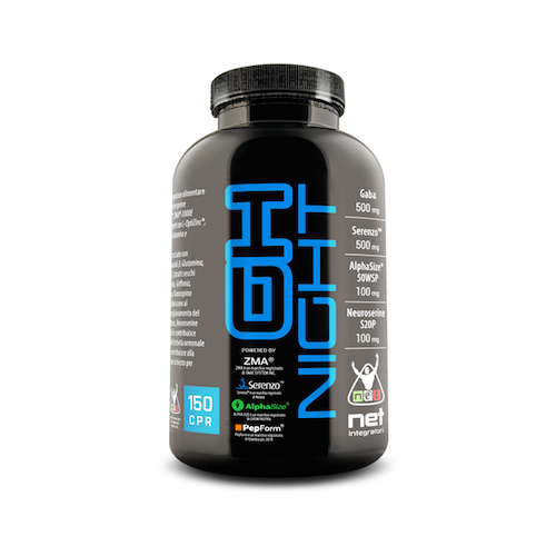 INGREDIENTI: L-Glutamina, Pepform® peptidi di Glutamina (Proteine del siero del LATTE isolate idrolizzate, L-Glutamina), Cellulosa microcristallina E460i, Serenzo™ [Arancio dolce Es Tit. al 20 % limonene (Citrus Sinensis, frutto)], GABA (Acido γ-Amminobutirrico), L-Ornitina Alfachetoglutarato, Ashwaganda ES Tit. al 1.5 % whitenolidi (Withania somnifera L., radice), Calcio carbonato, Magnesio Stearato E572, ZMA®-2000E [Zinco Mono-L-Metionina solfato, Magnesio Citrato, Magnesio Ossido, Piridossina Cloroidrato (Vit. B6)], Silicio Biossido E551, Polivinilpirrolidone E1201, Esteri poligliceridi degli acidi grassi E472, Valeriana EF (Valeriana Officinalis, radice), Passiflora EF (Passiflora Incarnata, Fiori), Biancospino EF (Crataegus Oxyacantha, fiori e foglie), Griffonia ES Tit. al 99 % 5-HTP (Griffonia Simplicifolia, semi), AlphaSize® 50WSP (Alfa-Gliceril-fosforil-colina, D-Mannitolo, Silicio Biossido E551), Neuroserine S20P [Fosfatidilserina Tit. 20 %, Fosfatidilcolina Tit. 20 % (SOIA)], Iperico EF (Hypericum Perforatum, Erba con fiori), Pepe Nero Es Tit. 95 % Piperina (Piper Nigrum, Frutto), Melatonina.