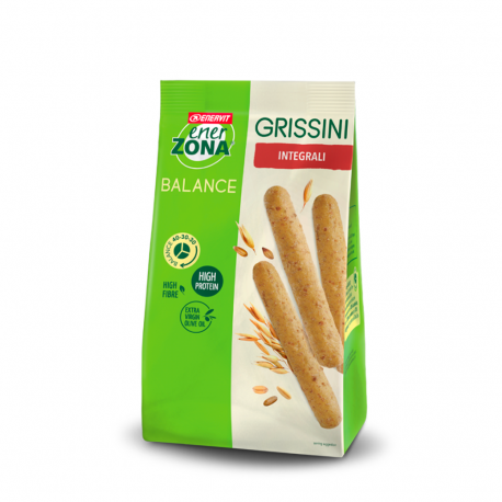 GRISSINI INTEGRALI 40-30-30 di ENERZONA sono realizzati con olio extravergine di oliva, che contiene naturalmente acido oleico (5,7%). Mettili in tavola come il pane o gustali quando vuoi come snack, ogni confezione contiene 5 porzioni da 6 grissini.