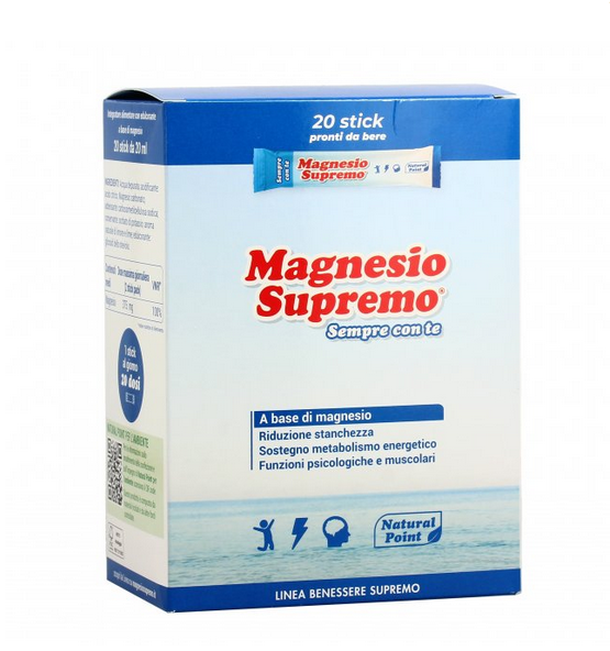 MAGNESIO SUPREMO SEMPRE CON TE 20 STICK di NATURAL POINT è un integratore a base di magnesio supremo in forma gel, pronto da bere e da portare sempre con te.