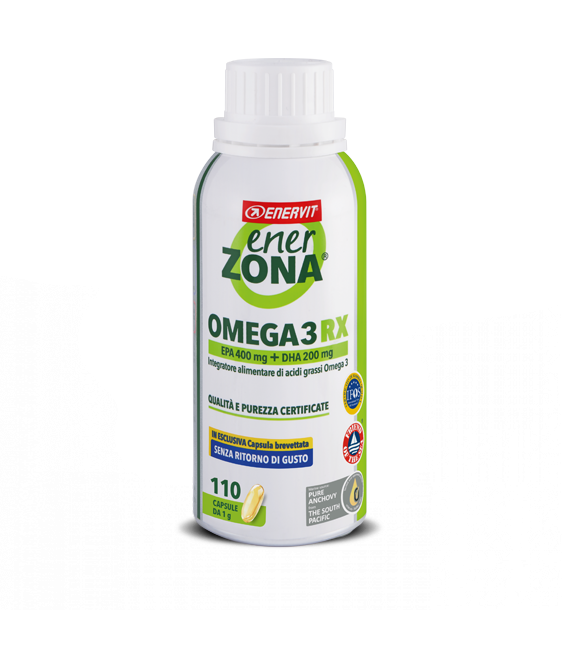 Omega 3 Rx 110 Softgel di ENERZONA è un concentrato di acidi grassi Omega 3 (EPA+DHA) derivati da olio di pesce, ottenuti per distillazione molecolare.