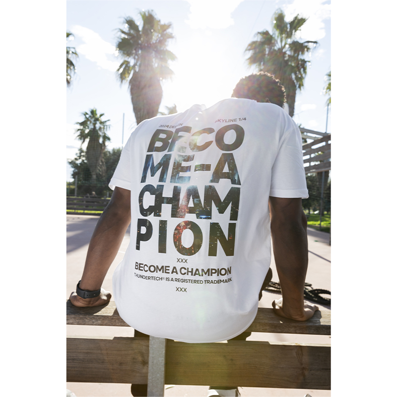 La Oversize Sportswear "Become A Champion" Limited Edition Skyline 1/4 di ThunderTech Nutrition non è solo una maglietta: è un'affermazione di stile e personalità. Pensata per chi ama distinguersi, questa t-shirt unisce il mondo dello streetwear urban e del fitness, con un design che cattura l’attenzione al primo sguardo.