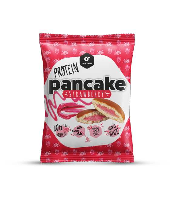 Protein Pancake 50g Fragola di GO FITNESS sono degli irresistibili pancake proteici farciti con crema alle fragole già pronti da mangiare con ben 10g di proteine.