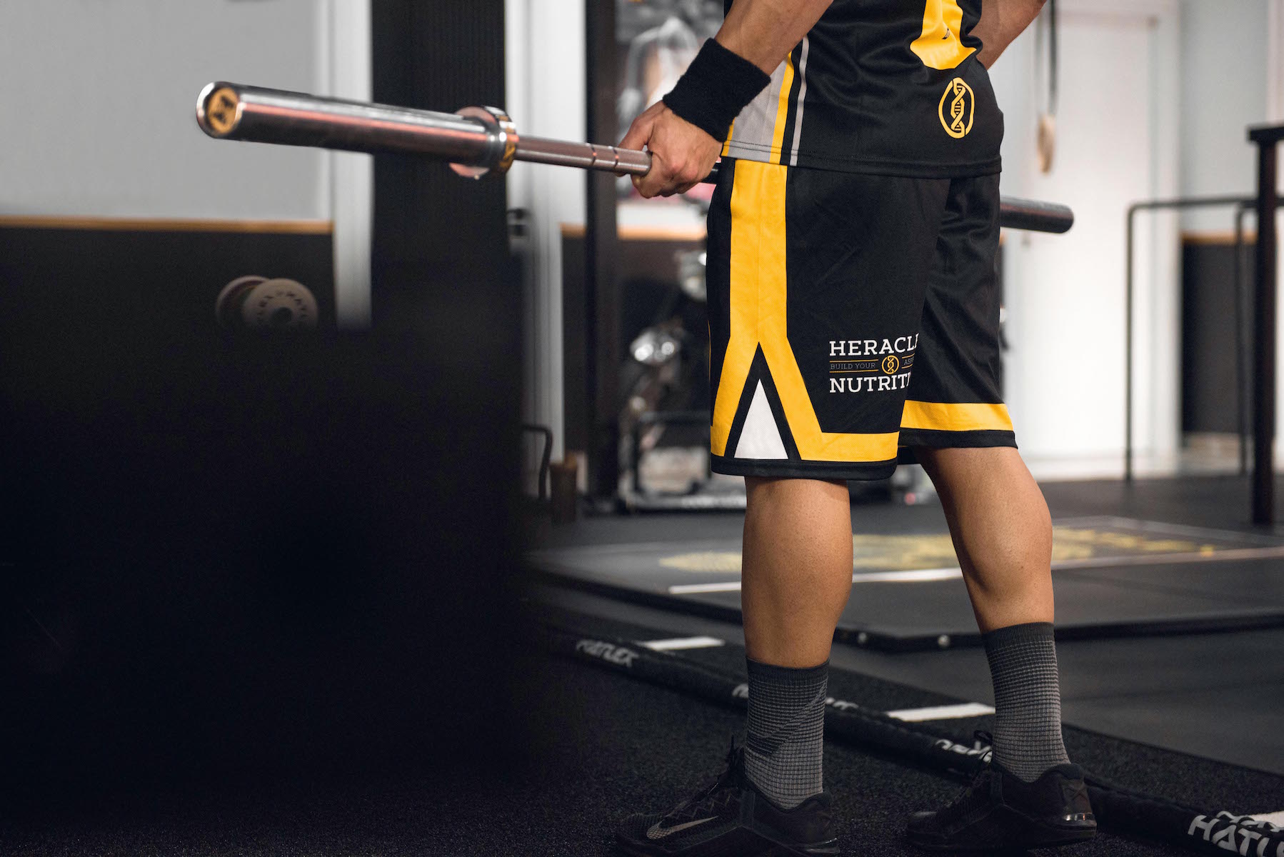 SHORT OFFICIAL HERACLES NUTRITION™ BLACK/GOLD è l'esclusivo pantaloncino targato HN SPORTSWEAR
