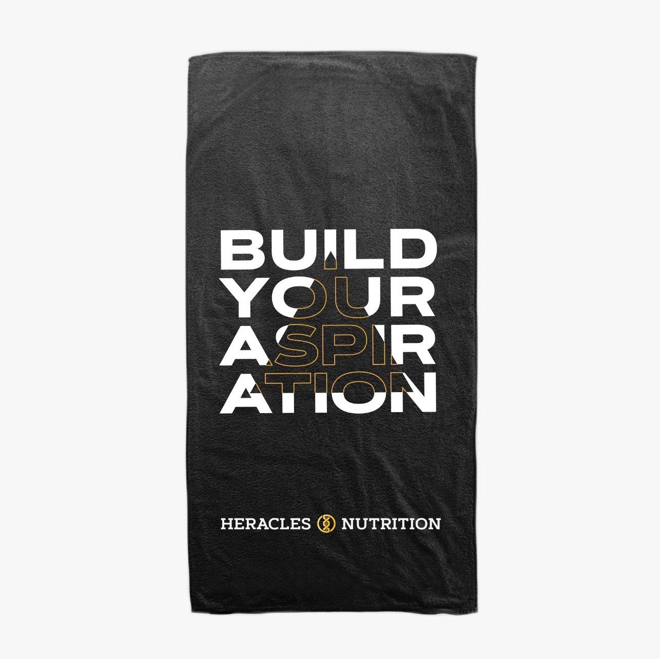 Heracles Nutrition lavora incessantemente giorno dopo giorno per cercare di accompagnarti al meglio in ogni ambito della tua vita, ed è per questo che il nostro Team di Designer ha deciso di mettere sul mercato questo "special" del telo da palestra firmato Heracles Nutrition con tema grafico il nostro payoff che da sempre ci caratterizza "Build Your Aspiration".