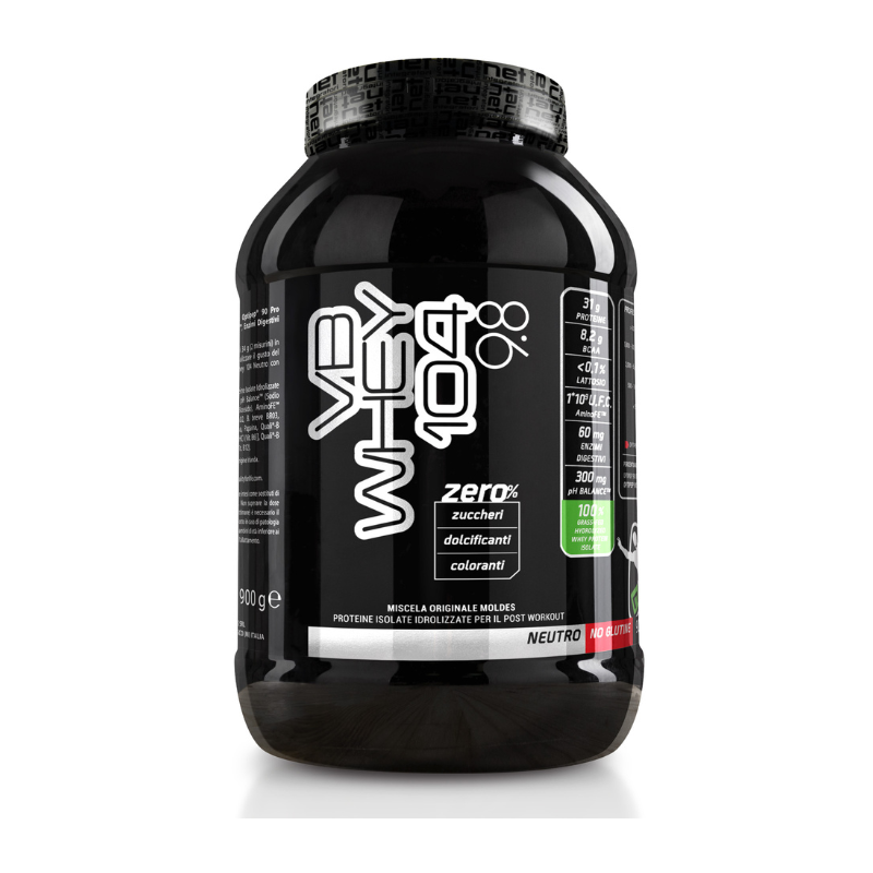 VB WHEY 104 9.8 900G di NET INTEGRATORI è certificato senza glutine e contiene meno dello 0,1% di lattosio, inoltre è arricchito con una dose elevata di Bcaa che permettono lo sviluppo e il mantenimento della massa muscolare.