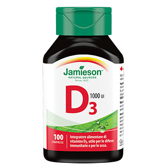 VITAMINA D3 1000UI (100CPR)di JAMIESON è un integratore alimentare a base di vitamina D3 (colecalciferolo) naturale.