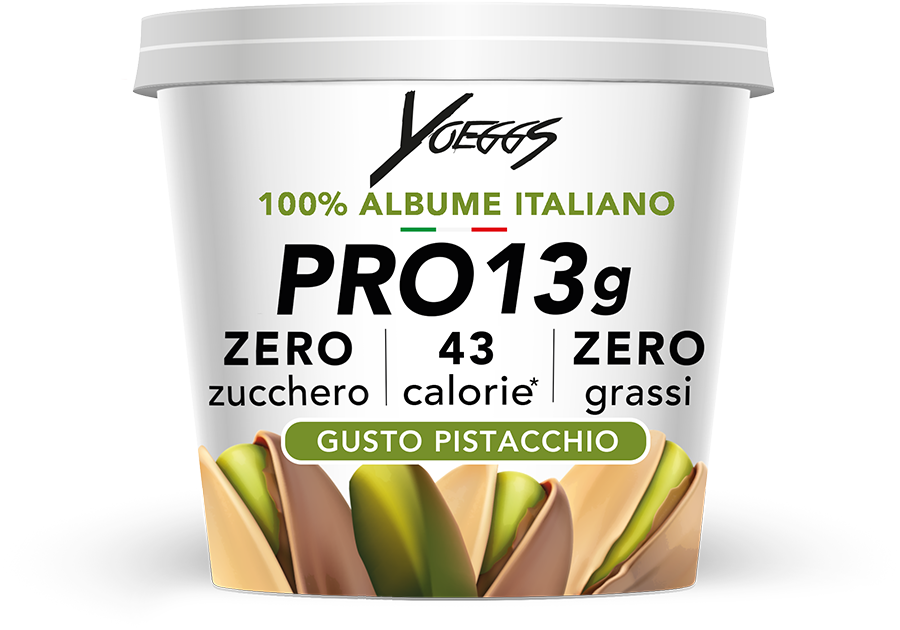 YOEGGS PISTACCHIO 125G di YOEGGS è uno squisito "Yogurtino" proteico a base di albume d'uovo, pensato per tutte le persone che scelgono una dieta sana ed equilibrata senza rinunciare al gusto.