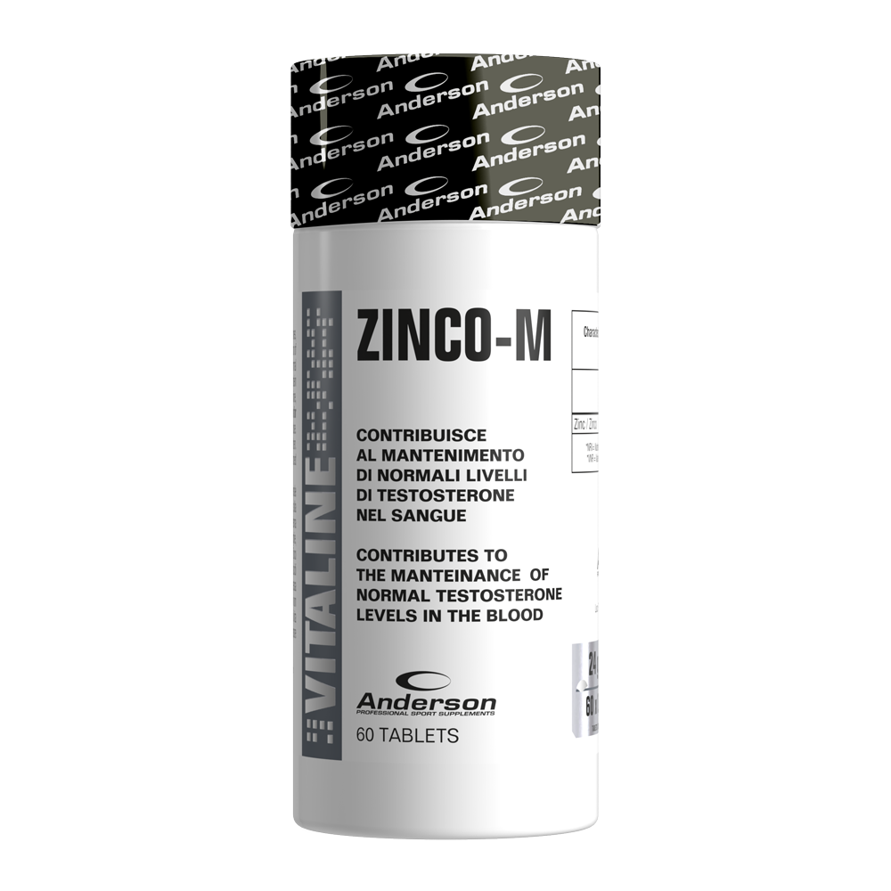 ZINCO-M 60TABS di ANDERSON RESEARCH garantisce la normale sintesi proteica e il mantenimento di normali livelli di testosterone, ha quindi un ruolo importante nello sviluppo della massa muscolare e nella salute sessuale.